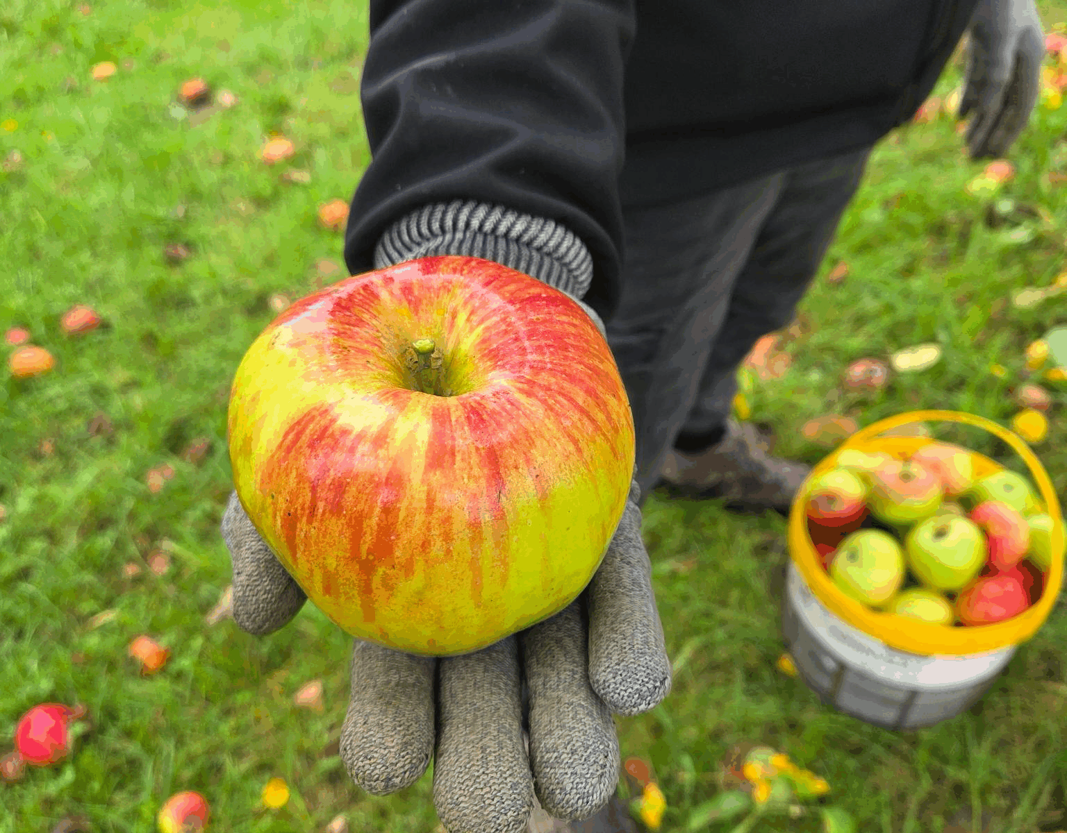 Apfelernte im September 2025: mit vielen tollen Helferinnen und Helfern haben wir etliche Zentner Äpfel geerntet. Die werden jetzt zu lecker Stöffchen verarbeitet. Es bleiben aber auch noch genügend Äpfel für die Tiere auf unserer Sreuobstwiese zurück.