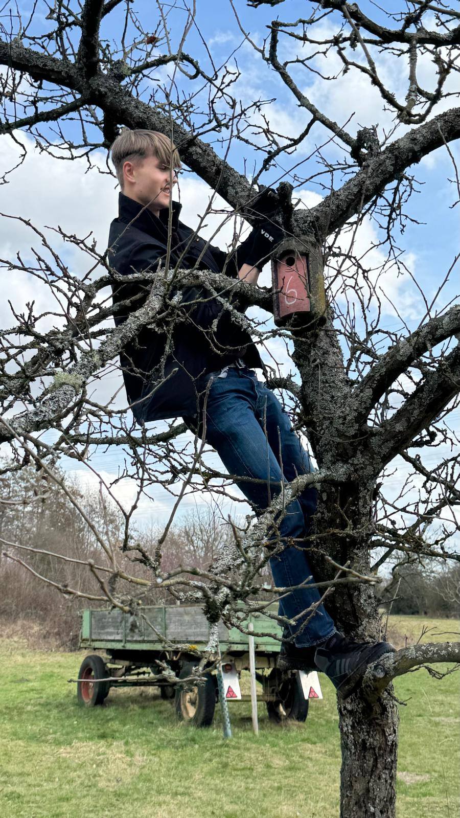 Die Teufelszeug gGmbH hat jetzt ihre eigenen Streuobstflächen aufgewertet: mit Nistkästen aus dem Fundus des VVL. Und der hat natürlich auch ein wenig geholfen.
